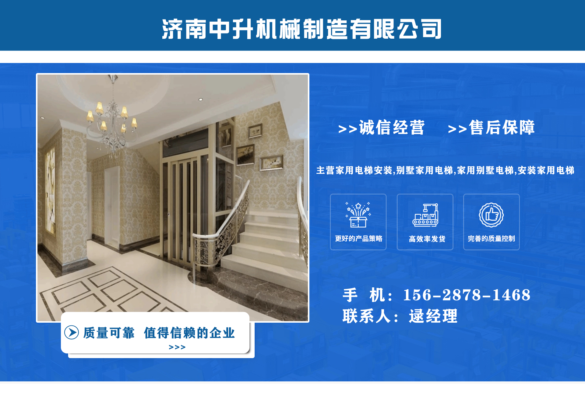 濟(jì)南中升機(jī)械制造有限公司主營(yíng)家用電梯安裝,別墅家用電梯,家用別墅電梯,安裝家用電梯等業(yè)務(wù),質(zhì)量可靠,值得信賴! 公司為客戶提供免費(fèi)上門測(cè)量,根據(jù)實(shí)際情況1對(duì)1服務(wù),保障符合用戶需求,終身提供售后服務(wù),讓用戶買的舒心用的放心。匠心團(tuán)隊(duì),打造信賴產(chǎn)品,我們有團(tuán)結(jié)、奮進(jìn)拼搏的匠心團(tuán)隊(duì),為您提供可信賴的品質(zhì)保證?! 膭?chuàng)立以來一直嚴(yán)格執(zhí)行質(zhì)量管理體系、環(huán)境管理體系等相關(guān)標(biāo)準(zhǔn)管理體系,“顧客滿意”是我們始終如一的追求。我們有屬于自己培養(yǎng)的安裝隊(duì)伍,24小時(shí)服務(wù)電話,為您提供可靠的服務(wù)與支持?! ∥覀兊脑妇笆墙ㄔO(shè)國(guó)內(nèi)具有影響力的電梯公司,做城市美好空間的好伙伴。...